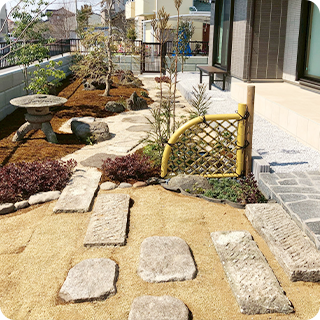 専門の職人がお手入れしやすい庭を丁寧に仕上げ、お客様だけの「癒し空間」をつくりあげます。